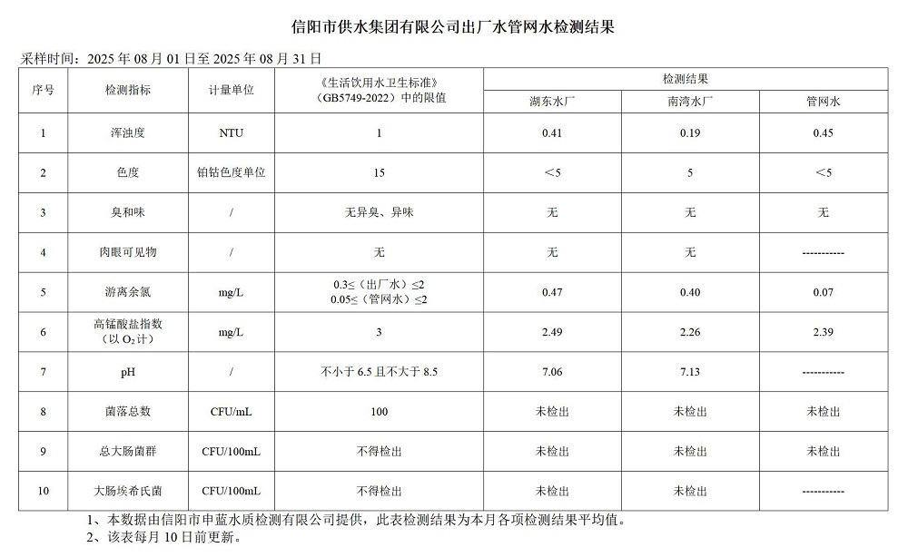 8月-出廠水、管網水檢測